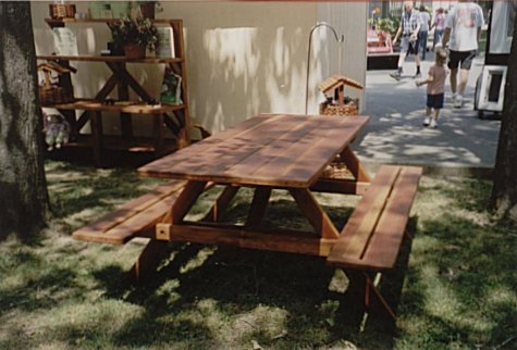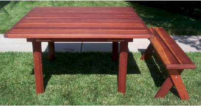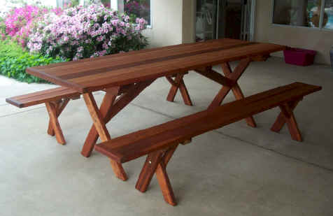 in 6' or 8' sizes with benches attached (as shown) or unattached.. Ends of table and benches are capped for a cleaner more custom finish. End benches are available. |